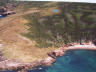 are only a couple of small rocky beaches. The island has a high cliff all the way around it. There is also a lot of difficulty